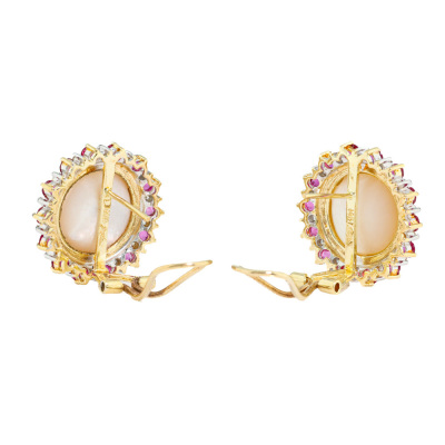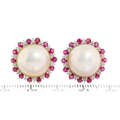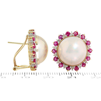 12.6mm Mabe Pearl, Ruby & Diamond Earrings
