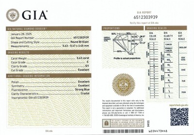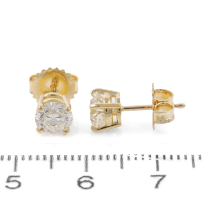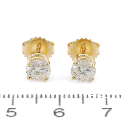 Diamond stud earrings with 2 round brilliant cut Natural Diamonds totalling 1.27ct (with GIA Dossier Reports graded as E SI1 #6515303826, 6512303939). 18ct yellow gold. Weight: 1.5g. (New)