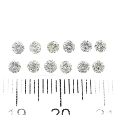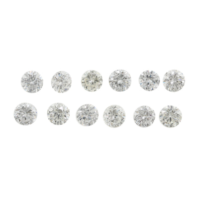 Parcel of 12 loose round Natural Diamonds totalling 1.27ct (Estimated grading: H-J P1-P2). Size 2.8mm-3mm. (New)