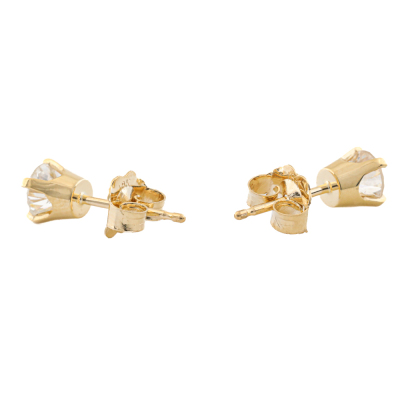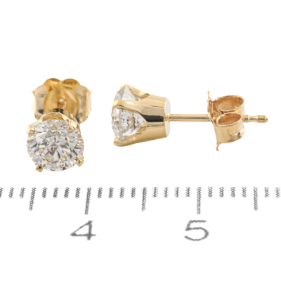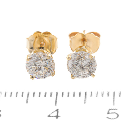 Diamond stud earrings with 2 round brilliant cut Natural Diamonds totalling 1.28ct (Estimated grading: G P1-P2). 18ct yellow gold. Weight: 1.3g. (New)
