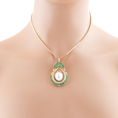 12.8mm Pearl, Emerald, Diamond Pendant