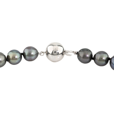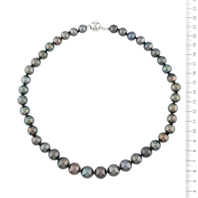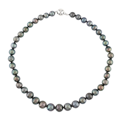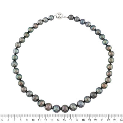 Pearl necklace with 41 graduated Tahitian Pearls from 12.9mm - 9.1mm. 14ct white gold 12mm ball clasp. Length: 48cm. Weight: 72.9g. (Pre-owned)