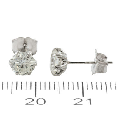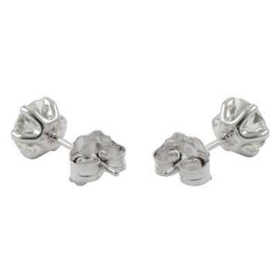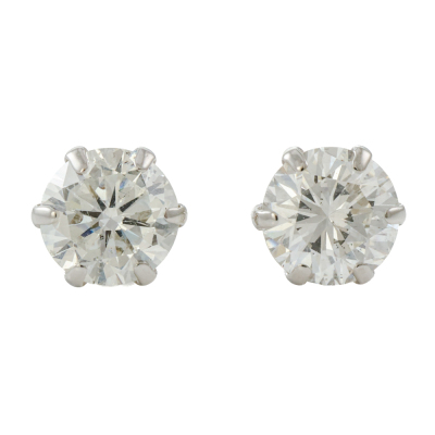 Diamond stud earrings with 2 round brilliant cut Natural Diamonds totalling 1.29ct (Estimated grading: I SI). Platinum-900 with 18ct white gold backs. Weight: 0.8g