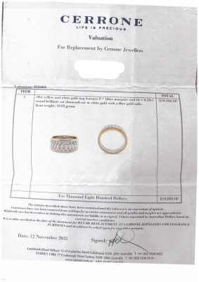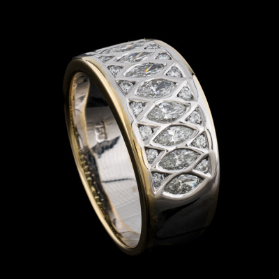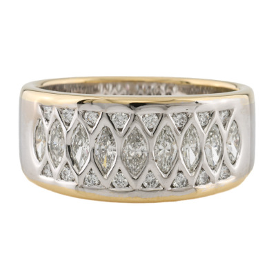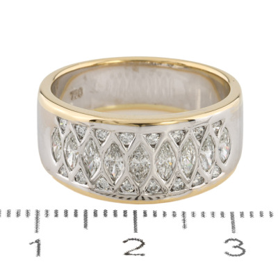 Cerrone Diamond ring with 9 marquise cut Natural Diamonds and 16 round Natural Diamonds totalling 1.30ct (Estimated grading: HIJ VS). 18ct yellow and white gold. Ring size P. Band width: 6.3mm - 7.5mm. Weight: 10.1g. With copy of Cerrone Valuation dated 12/11/2025 and Cerrone Box. (Pre-owned).