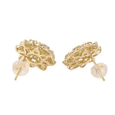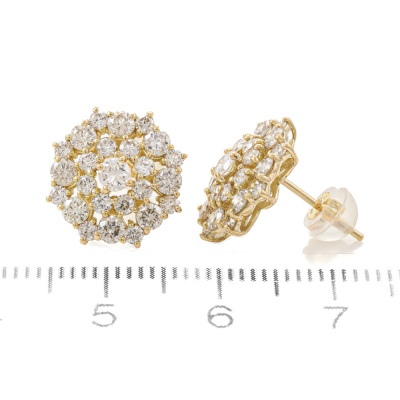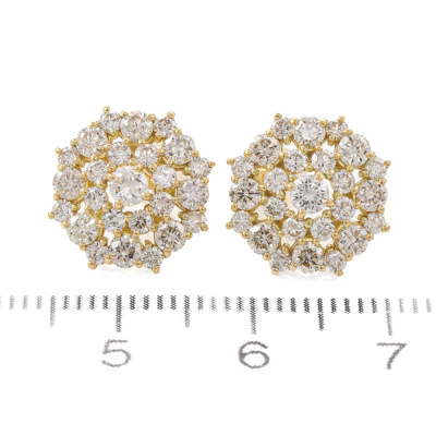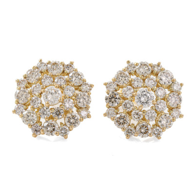 Diamond dress earrings with round Natural Diamonds totalling 1.30ct (Estimated grading: G-J SI). Earring diameter: 12.3mm. 18ct yellow gold. Weight: 3.0g. (pre-owned)