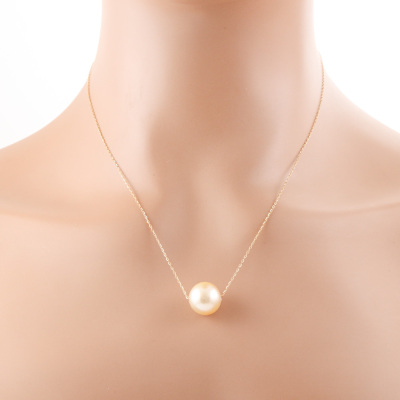 Pearl pendant with a Light Golden South Sea Pearl of 13.0mm. 18ct yellow gold. Adjustable maximum Length: 45.cm. Weight: 4.2g.