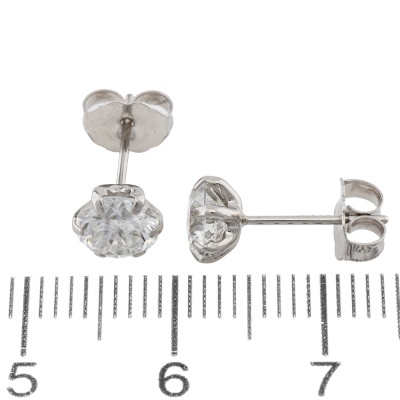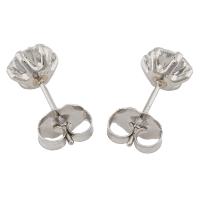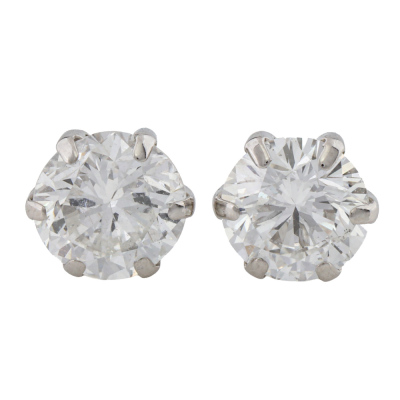Diamond stud earrings with 2 round brilliant cut Natural Diamonds totalling 1.31ct (Estimated grading: G SI). Platinum-900 with 18ct white gold backs. Weight: 0.8g