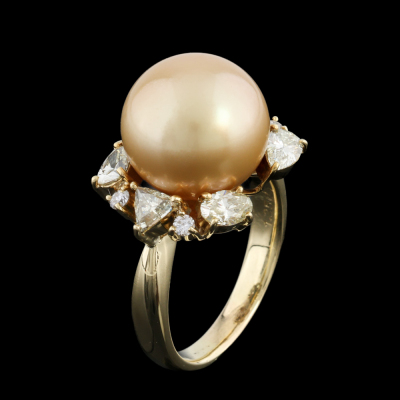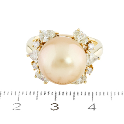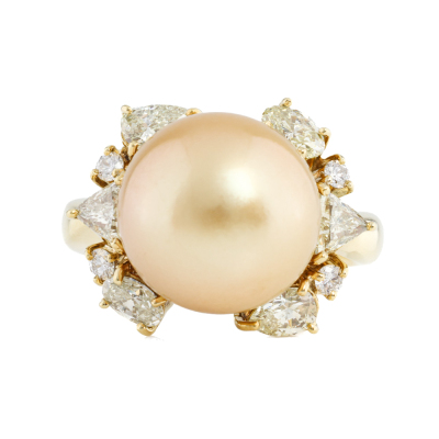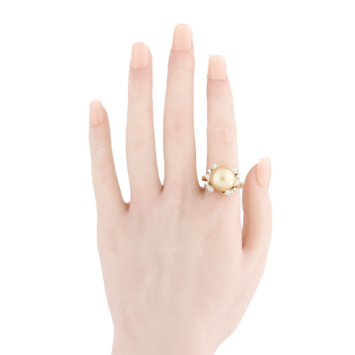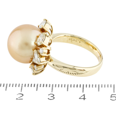 13.1mm Golden South Sea Pearl & Diamond Ring