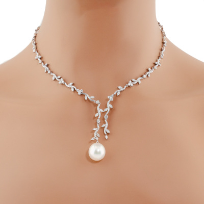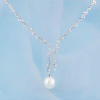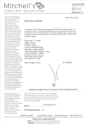 Pearl and Diamond necklace with South Sea Pearl of approximately 13.3mm and round Natural Diamonds totalling 3.16ct (Estimated grading: G-H SI). 18ct white gold. Length: 40cm. Weight: 25.1g. With Certificate #420681. (Pre-owned)