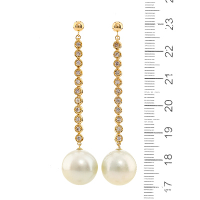 13.4-13.1mm South Sea Pearl & Diamond Earrings