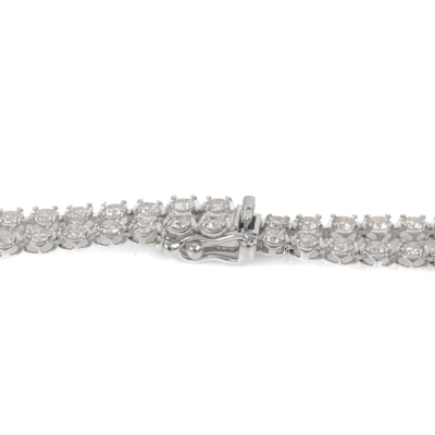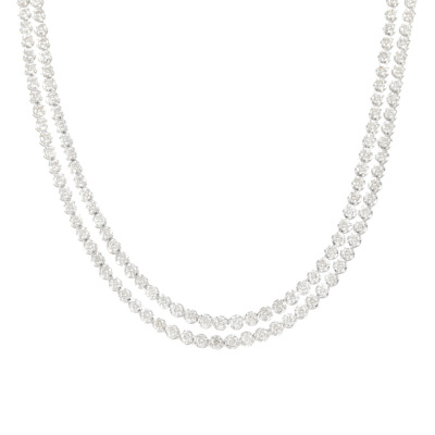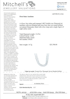 Diamond 2 row tennis necklace with 264 round Natural Diamonds totalling 13.47ct (Estimated grading: I-J SI). 14ct white gold. Length: 42cm. Weight: 14.7g. With Valuation Certificate #420133. (New)
