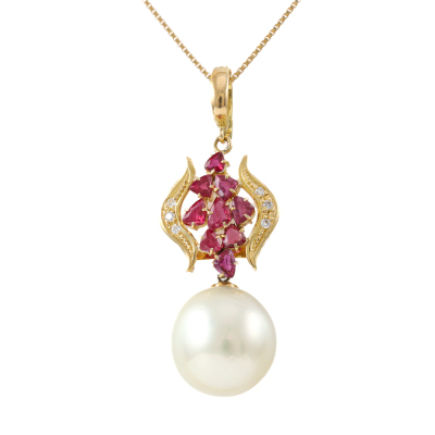 13.4mm Pearl, Ruby & Diamond Pendant*