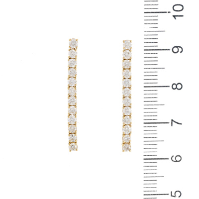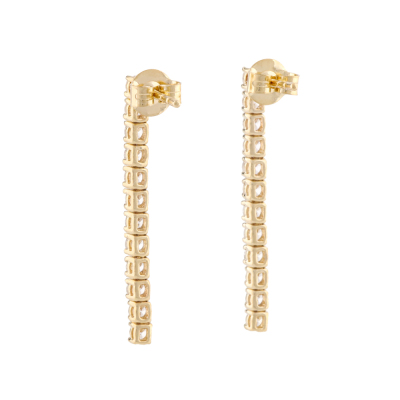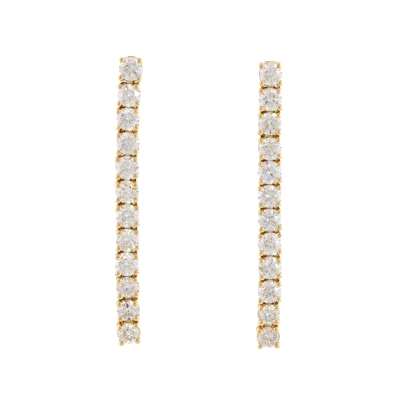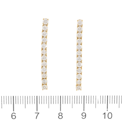 Diamond drop earrings with 24 round natural Diamonds totalling 1.35ct (Estimated grading: H SI). 14ct yellow gold. Length: 30mm. Weight: 2.3g.
