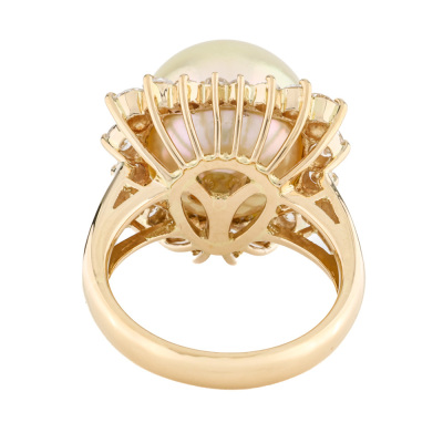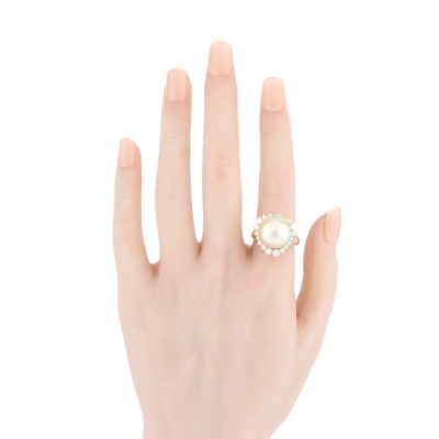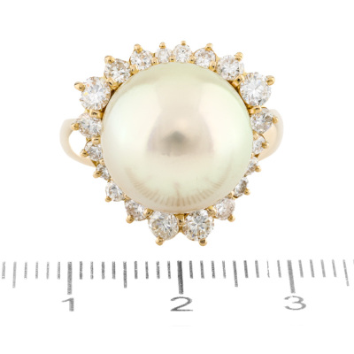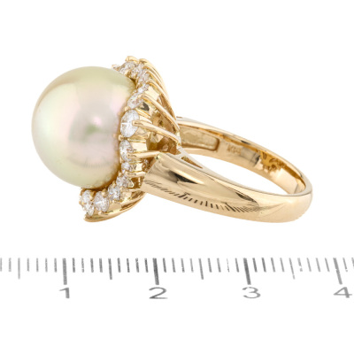 13.9mm Light Golden South Sea Pearl & Diamond Ring