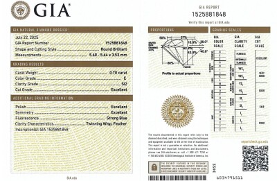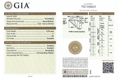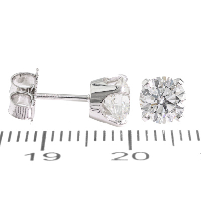 Diamond stud earring with round brilliant cut Natural Diamonds totalling 1.40ct (with GIA Dossier Reports graded as E SI2 #7521348623, 1525881848). 18ct white gold. Weight: 1.8g. (New)