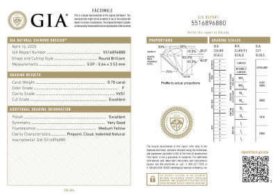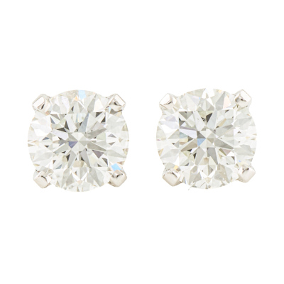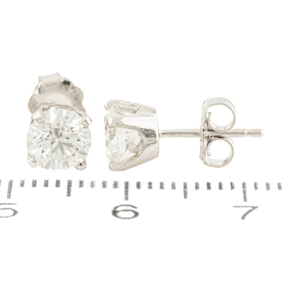 Diamond stud earrings with 2 round brilliant cut Natural Diamonds totalling 1.41ct (with GIA Summary Reports graded as F VVS1 #5516896880, #7528652464). 18ct white gold. Weight: 1.5g. (Pre-owned)