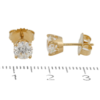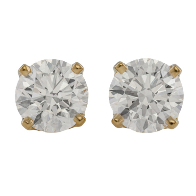 Diamond stud earrings with 2 round brilliant cut Natural Diamonds totalling 1.41ct (with GIA Diamond Dossier Reports graded as G VVS2 #7521962302 & H VVS1 #1525187817). 18ct yellow gold. Weight: 1.7g. (New