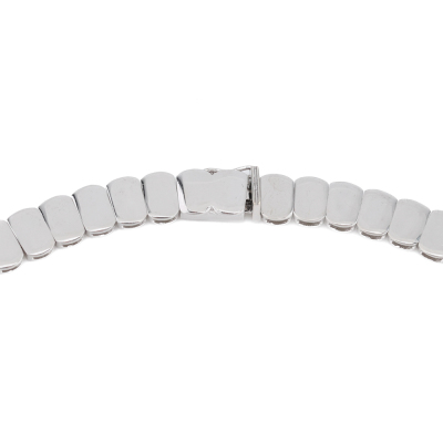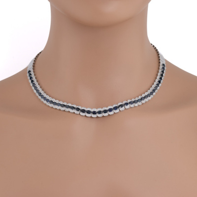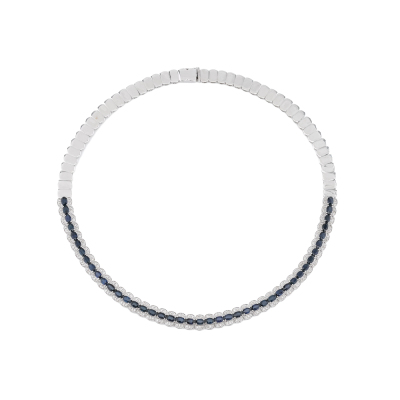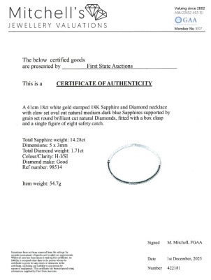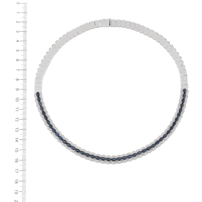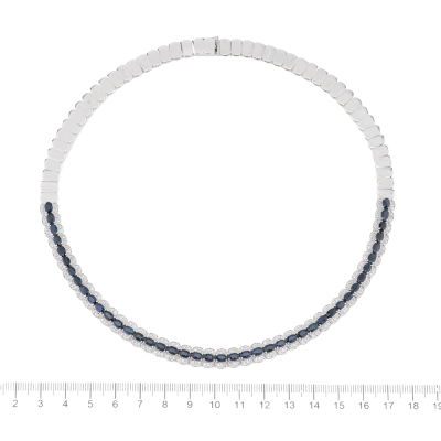 Sapphire and Diamond necklace with oval Natural blue Sapphires totalling 14.28ct and round Natural Diamonds totalling 1.71ct (Estimated grading: H-I SI). 18ct white gold. Inner circumference: 41cm. Weight: 54.7g. With Certificate #422181. (Pre-owned)