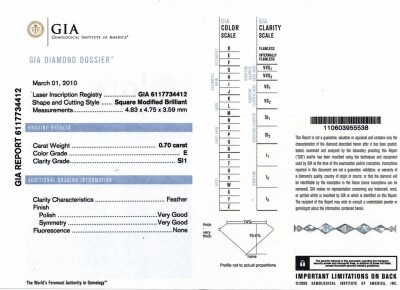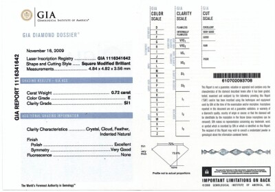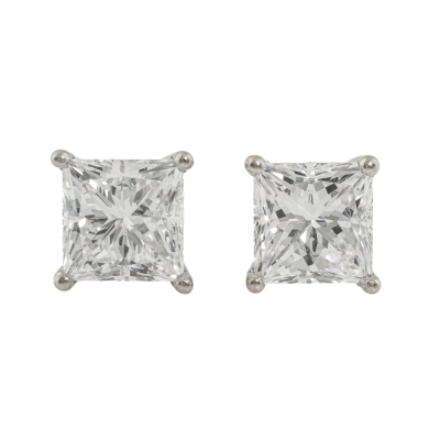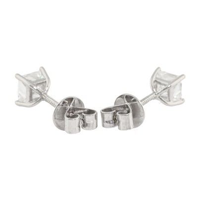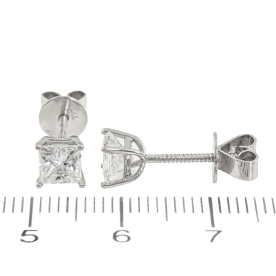 Diamond screwback stud earrings with 2 princess cut Natural Diamonds totalling 1.42ct (both with GIA Diamond Dossier's graded as E SI1 #6117734412, 1116341642). 18ct white gold with 18ct white gold backs. Weight: 1.9g.