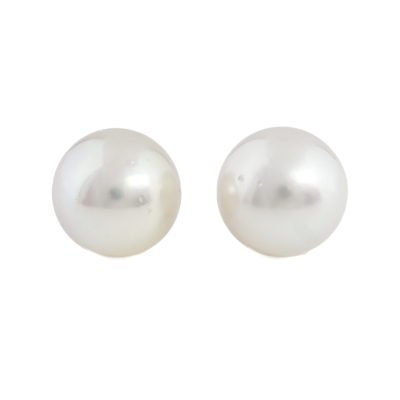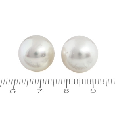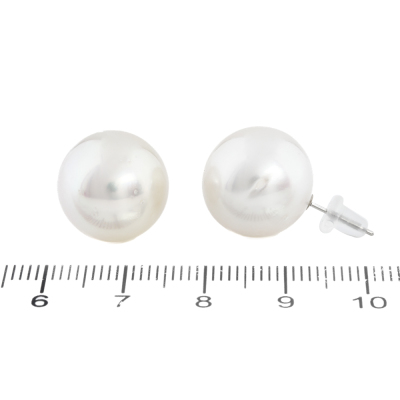 Pearl stud earrings with South Sea Pearls of 14.4mm. Platnum 900 with silicon backs. Weight: 8.9g. (New)