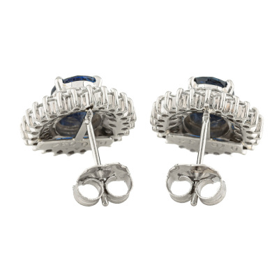 Sapphire and Diamond earrings with oval shape Natural blue Sapphires totalling 1.46ct and round Natural Diamonds totalling 0.64ct (Estimated grading: G-H SI). Platinum - 900 with 18ct white gold butterflies. Weight: 7.1g. (Pre-owned)
