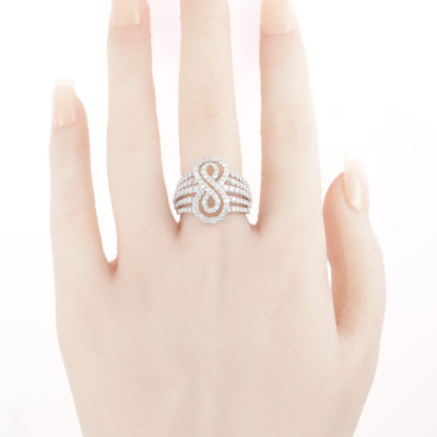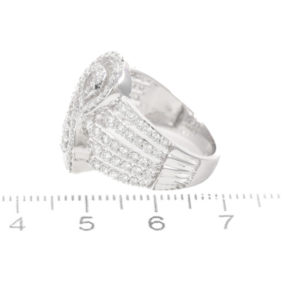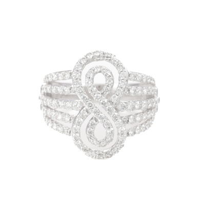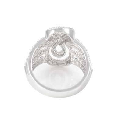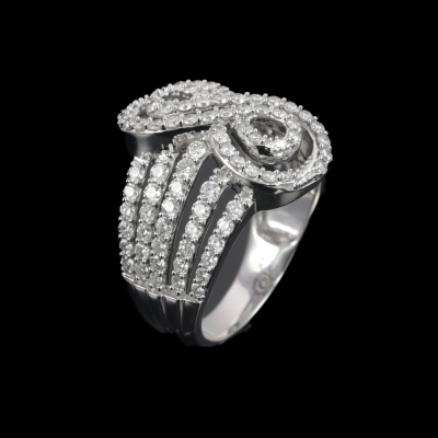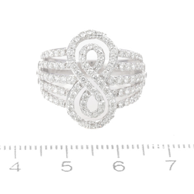 Diamond dress ring with 110 round Natural Diamonds totalling 1.47ct (Estimated grading: H-I SI). 14ct white gold. Ring size: M1/2. Band width: 3.6mm - 5.5mm. Weight: 6.2g. (New)