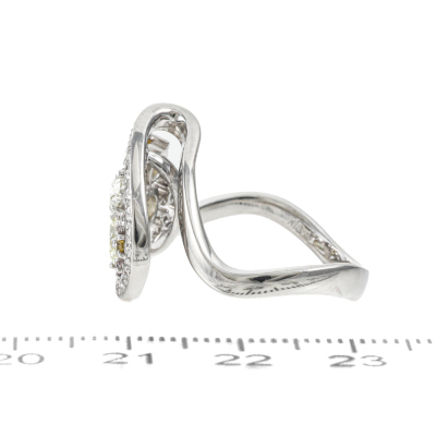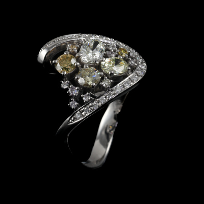 Diamond ring with round & oval shape Natural Diamonds totalling 1.48ct (Estimated grading: Light Yellow - Fancy Brownish Yellow, Light Light Pink, H-I SI). 18ct white gold. Ring size: M - ring resizing is not recommended. Band width: 3.1mm - 2mm. Weight: 7.2g. (Pre-owned)