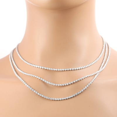 14.96ct Round Diamond 3 Row Tennis Necklace