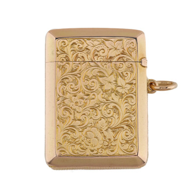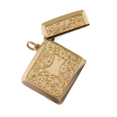 14ct Gold Engraved Vesta Case Pendant 15.6g