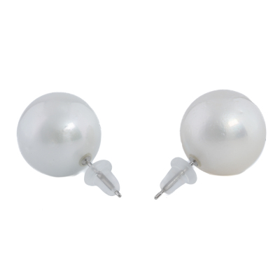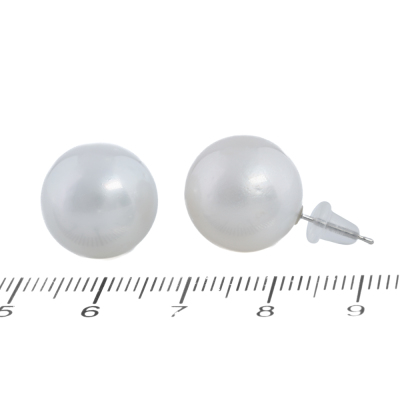 Pearl stud earrings with Cultured Pearls of 14mm. Platnum 900 with silicon backs. Weight: 8.2g. (New)