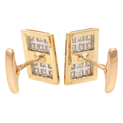 Diamond cufflinks with 30 round Natural Diamonds totalling approximately 1.50ct (Estimated grading: HIJ SI). 18ct yellow gold. Weight: 8.0g. (Pre-owned)