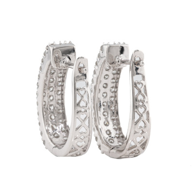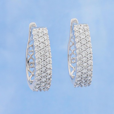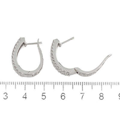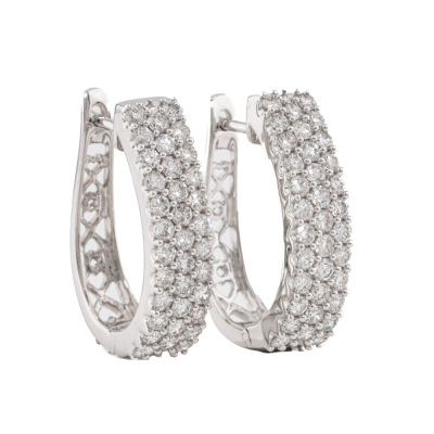 Diamond huggie earrings with 70 round Natural Diamonds totalling 1.50ct (Estimated grading: H-I SI). Size: approximately 2.12cm x 0.52cm. 14ct white gold. Weight: 6.2g. (New).