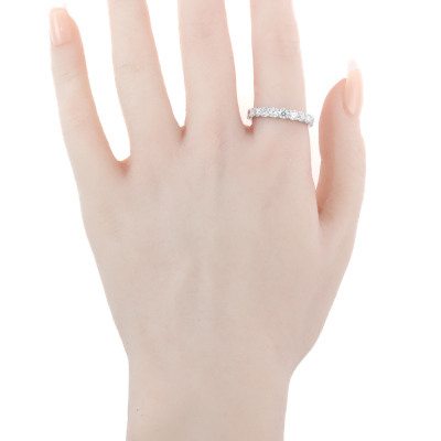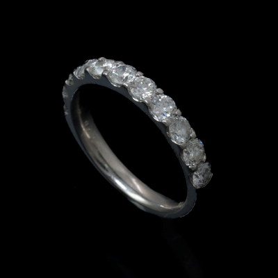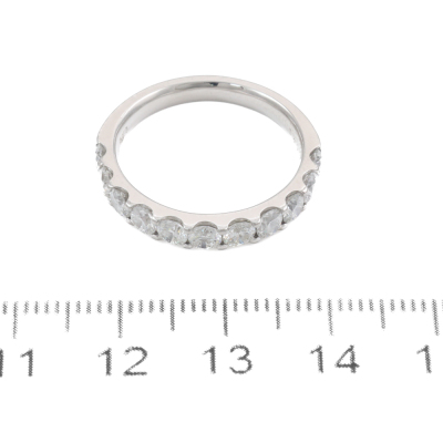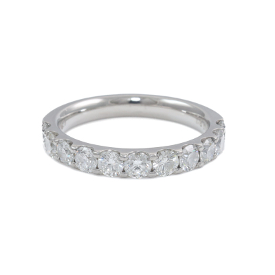 Diamond eternity ring with round Natural Diamonds totalling 1.50ct (Estimated grading: G VS-SI). Platinum -950. Ring size N1/2. Band width: 3mm. Weight: 5.9g. (Pre-owned)