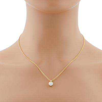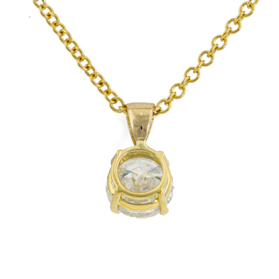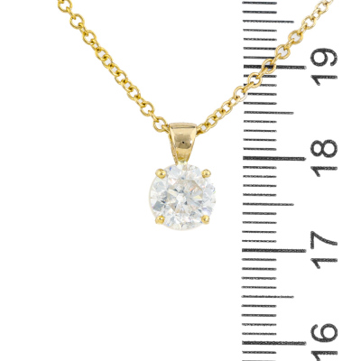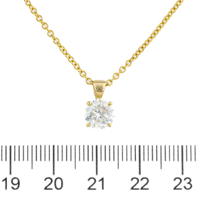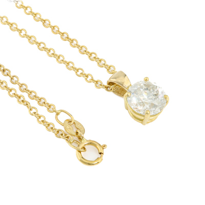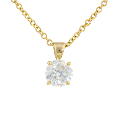 Diamond solitaire pendant with a round brilliant cut Natural Diamond of 1.50ct (Estimated grading: G-H P2-P3). 18ct yellow gold with 45cm 18ct yellow gold chain. Weight: 3.5g. (New)