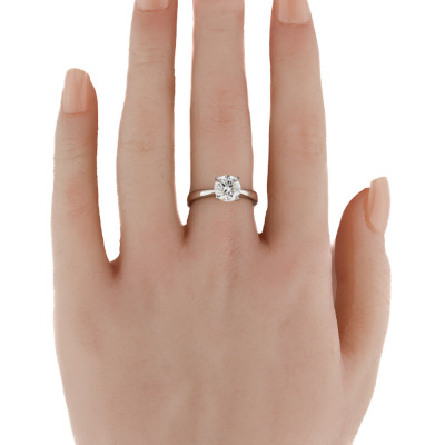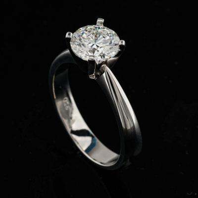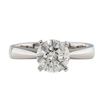 Diamond solitaire ring with round brilliant cut Natural Diamond of 1.50ct (with GIA Report graded as G P1 #1513908117). Platinum. Ring size L. Band width: 1.9mm -3.4mm. Weight: 6.2g.
