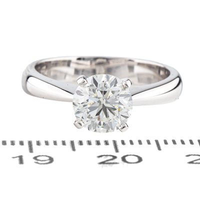 Diamond solitaire ring with round brilliant cut Natural Diamond of 1.50ct (with GIA Report graded as H VVS1 #3525068012). 18ct white gold. Ring size M. Band width 2.4mm - 3.4mm. Weight 4.7g.