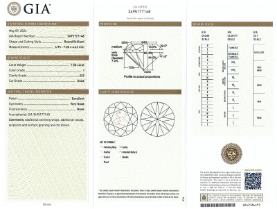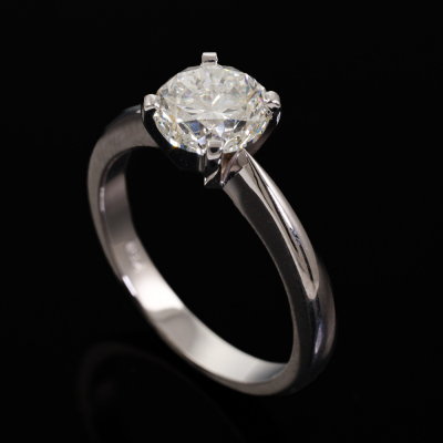 Diamond solitaire ring with round brilliant cut Natural Diamond of 1.50ct (with GIA Report graded as I SI2 #3495177148). 18ct white gold. Ring size: L. Band width: 2.6mm - 1.8mm. Weight: 4.4g. (New)
