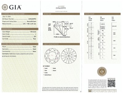Diamond solitaire ring with round brilliant cut natural Diamond of 1.50ct (With GIA Report graded as J SI2 # 2496630993). Platinum 950. Ring size L1/2. Band width: 3.5mm - 2mm. Weight 8.6g. (New)