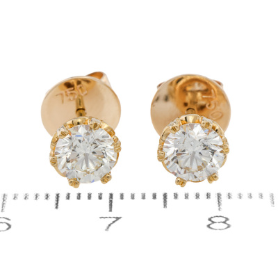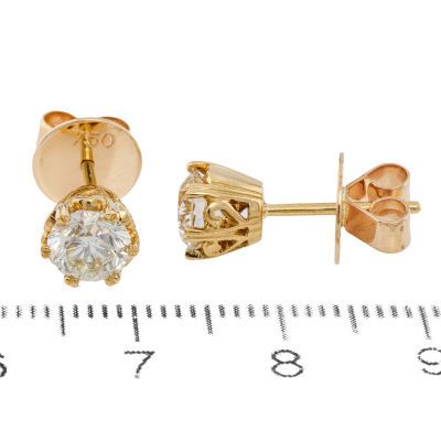 Diamond studs with round Natural Diamonds totalling 1.50ct (Estimated grading: K-L VS-SI). 18ct yellow gold. Weight: 3.2g. (Pre-owned)