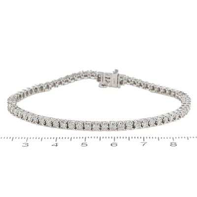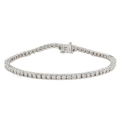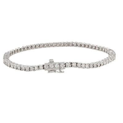 Diamond tennis bracelet with 66 round Natural Diamonds totalling 1.50ct (Estimated grading: H-I SI). 14ct white gold. Length: 18.7cm. Weight: 9.9g. With Valuation Certificate #420432. (New)