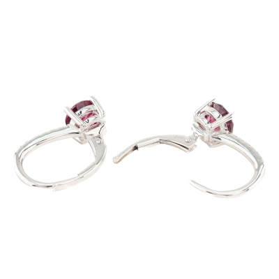 Garnet and Diamond leverback earrings with 2 round Natural Garnets totalling 1.50ct and round Natural Diamonds totalling 0.14ct. 13ct white gold (XRF tested, stamped 14K). Weight: 2.4g. (Pre-owned)
