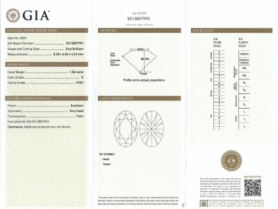 A loose oval shape Natural Diamond of 1.50ct (with GIA report graded as E VVS2 #5513807993 ). (New)