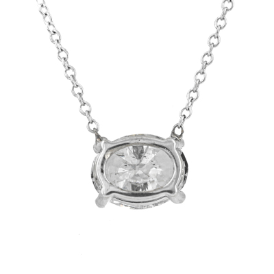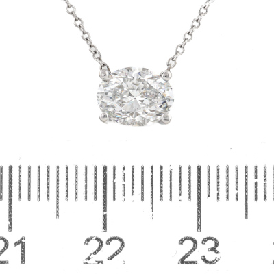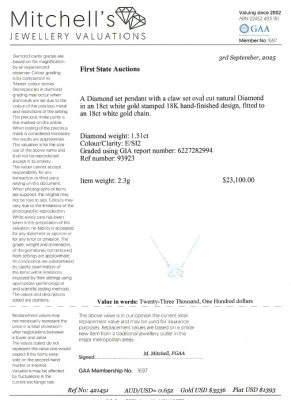 Diamond solitaire pendant with oval shape Natural Diamond of 1.51ct (with GIA report both graded as E SI2 #6227282994). 18ct white gold with 18ct white gold chain attached. Weight: 2.3g. With Valuation Certificate #421451. (New)