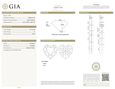 A loose heart shaped natural Diamond of 1.51ct (with GIA Report graded as E VVS2 #7528213190). (New)