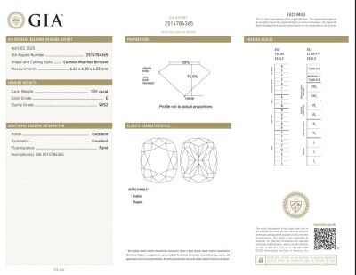 A loose cushion cut Natural Diamond of 1.51ct (With GIA Report graded as E VVS2 #2514784365).