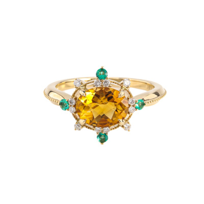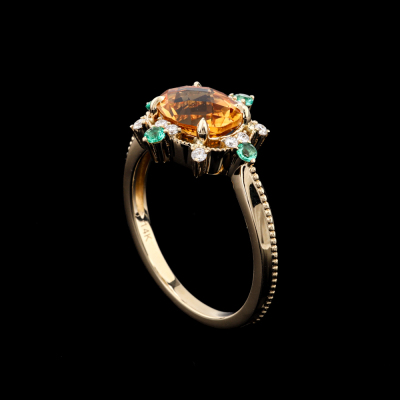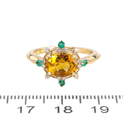 1.52ct Citrine, Emerald and Diamond Ring
