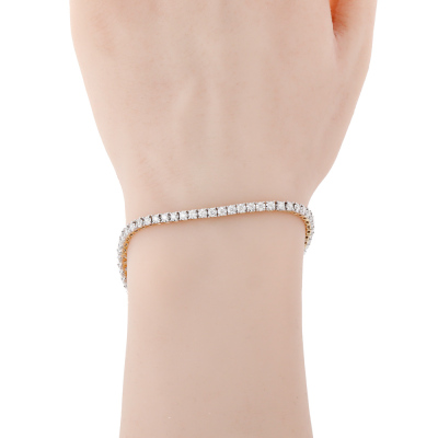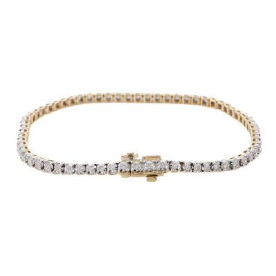 Diamond tennis bracelet with 66 round Natural Diamonds totalling 1.52ct (Estimated grading: H SI). 14ct yellow gold. Length: 18cm. Weight: 8.2g. (New)