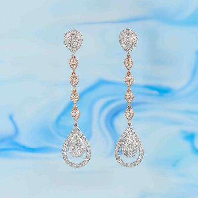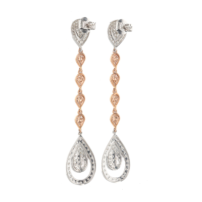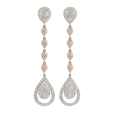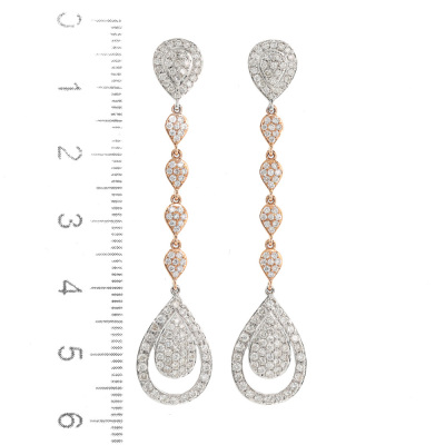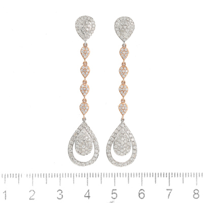 Diamond drop earrings with round Natural Diamonds totalling 1.54ct (Estimated grading: G-H SI-P1) 14ct white and rose gold. Drop length: 5.5cm. Weight: 4.3g. (New)