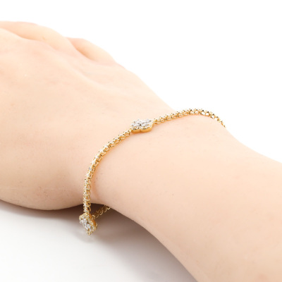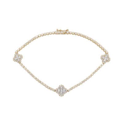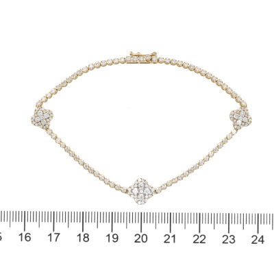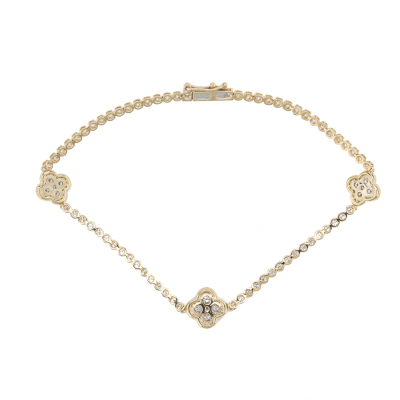 Clover design Diamond bracelet with 144 round Natural Diamonds totalling 1.55ct (Estimated grading: G-H SI). 14ct yellow gold. Length: 17.8cm. Weight: 4.2g. (New)