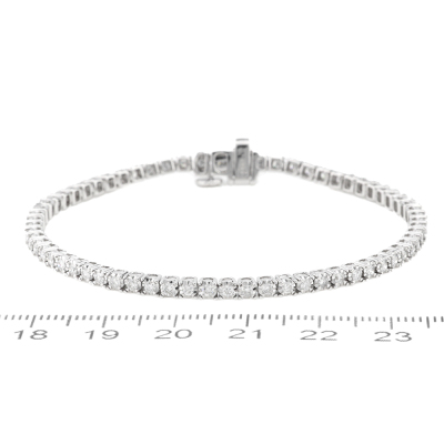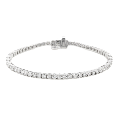 Diamond tennis bracelet with 66 round Natural Diamonds totalling 1.55ct (Estimated grading: H-I SI). 14ct white gold. Length: 18cm. Weight: 8.2g. With Valuation Certificate #420431. (New)